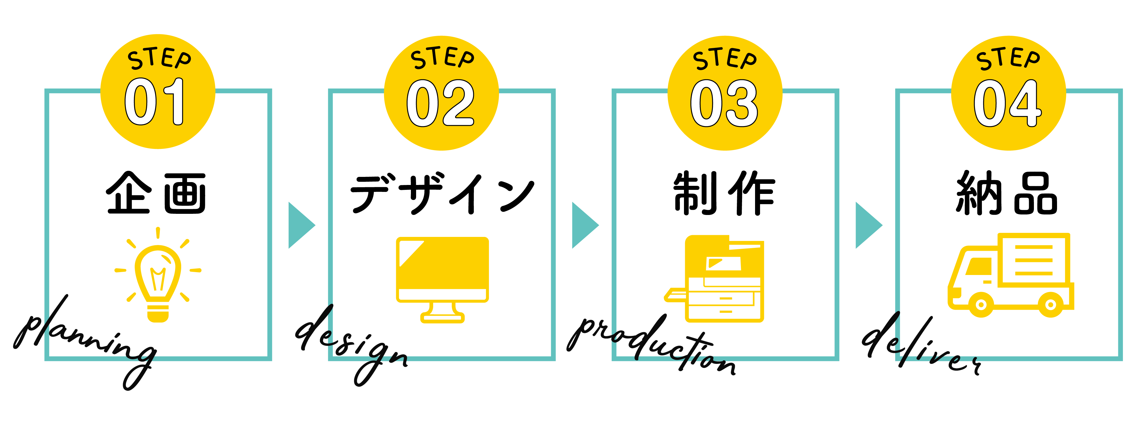 当社は、企画から納品にいたるデザインのプロセスを一括して請け負います。