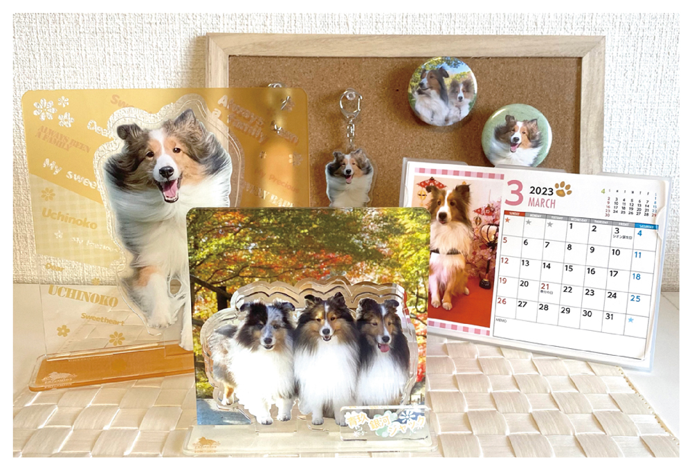 お客様から「うちの子」のお写真をお預かりし、カレンダーや名刺、アクリルグッズなど、様々なグッズにしてお届けしています。